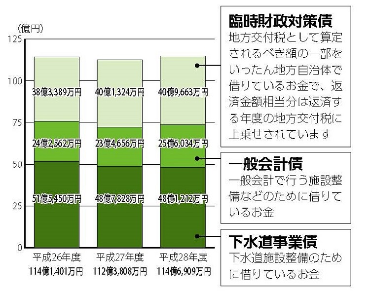 平成28年度の町債現在高は前年度に比べて約2億3,101万円増加しました。
