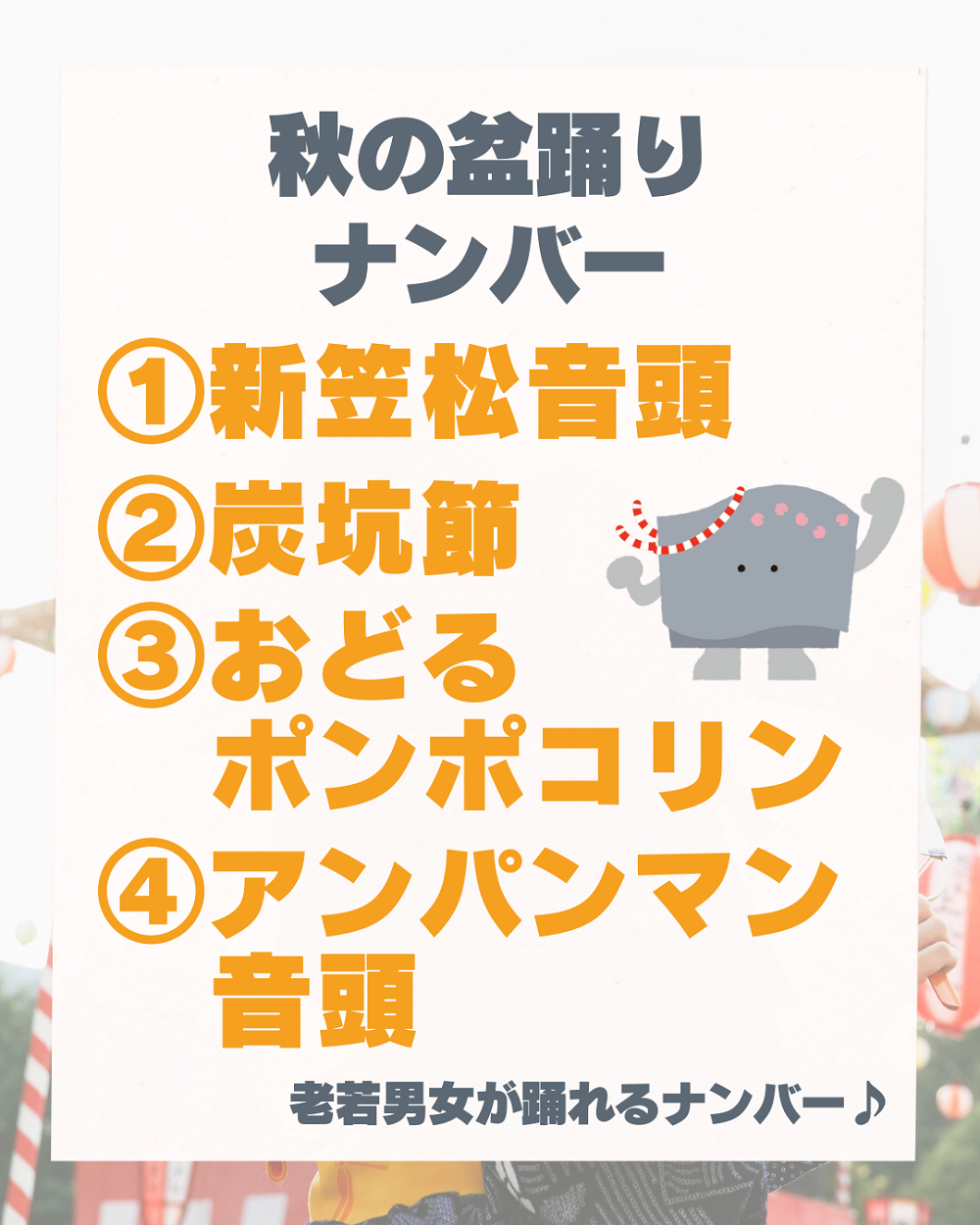 「2025」は、櫓(やぐら)を囲みながら「秋の盆踊り」を実施します。