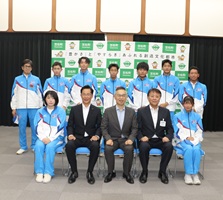 古田町長は「日頃の練習の成果を発揮できるように頑張ってください。これまでの皆さんの努力に敬意を表しますとともに、国民スポーツ大会でのご活躍を期待しております。」と激励され、選手代表の服部右夢選手は「岐阜県代表として、また笠松町代表として、良い結果を残せるように全力で頑張ります。」と抱負を述べられました。